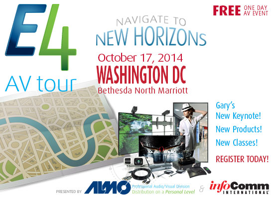 | Almo Pro A/V Offers New Install Service to Integrators Almo Pro A/V is helping its integrators and installers expand their project reach by introducing a full line of Almo Installation Services to its business offering. Almo will showcase these new services during the fall E4 AV Tour traveling networking and training show, which kicks off Oct. 3 in Boston (and at which our founder, Gary Kayye, is the keynote speaker) in Washington, D.C. on Oct. 17.