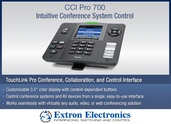 Extron Debuts 5″ Touch Panel with Integrated Control Processor Extron just launched the TLC Pro 521M an all-in-one 5″ wall mount touchpanel with built-in control processor. The fully-configurable TLC Pro 521M uses the same capacitive touchscreen of their TLP Pro 520M TouchLink Pro Touchpanel but adds a control processor inside of it. Power over Ethernet (PoE) allows the touchpanel to receive power and communications over a single Ethernet cable and it’s aimed at classrooms, boardrooms and meeting rooms.