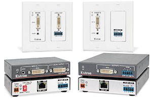 Extron's new DTP DVI 230 and DTP DVI 230 D are desktop and Decora-style twisted pair extenders that transmit DVI-D video, audio and bidirectional RS232 and IR control signals up to 230 feet (70 meters) over a single CATx cable. The DTP DVI 230 and DTP DVI 230 D provide what Extron calls an economical and effective means for extending single link DVI-D or HDMI signals. The transmitters are each equipped with a buffered DVI loop-through output to support a local computer monitor. Both models feature remote power capability of either the transmitter or receiver, and can be mixed and matched for installation flexibility.