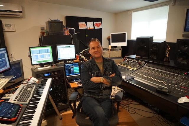Often that includes recording his own acoustic guitar, or any of several orchestral string players he works with regularly. “I’ll bring them into my studio, set up a pair of mics, and record them live,” he explains.