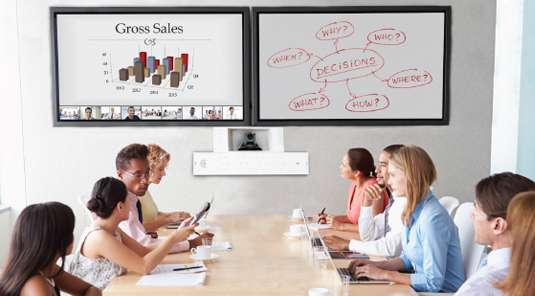 ClearOne’s multi-user wireless presentation, COLLABORATE® Share, enables up to six users to share presentations wirelessly, while in a call or during local in-room meetings. The entire experience integrates smoothly and consistently using a simple user interface. The solution can also conveniently — seamlessly — switch between video conferencing and local presentation.