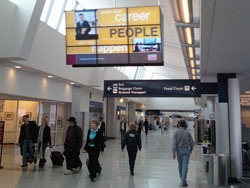 Every time I am in that terminal, I see this big set of tiled screens put in place by a local DOOH operator, and every time I shake my head at the rough job the company does with content. The problem is not so much the creative skills. It’s the utter refusal to acknowledge the bezel seams and the havoc they play with the presentation.