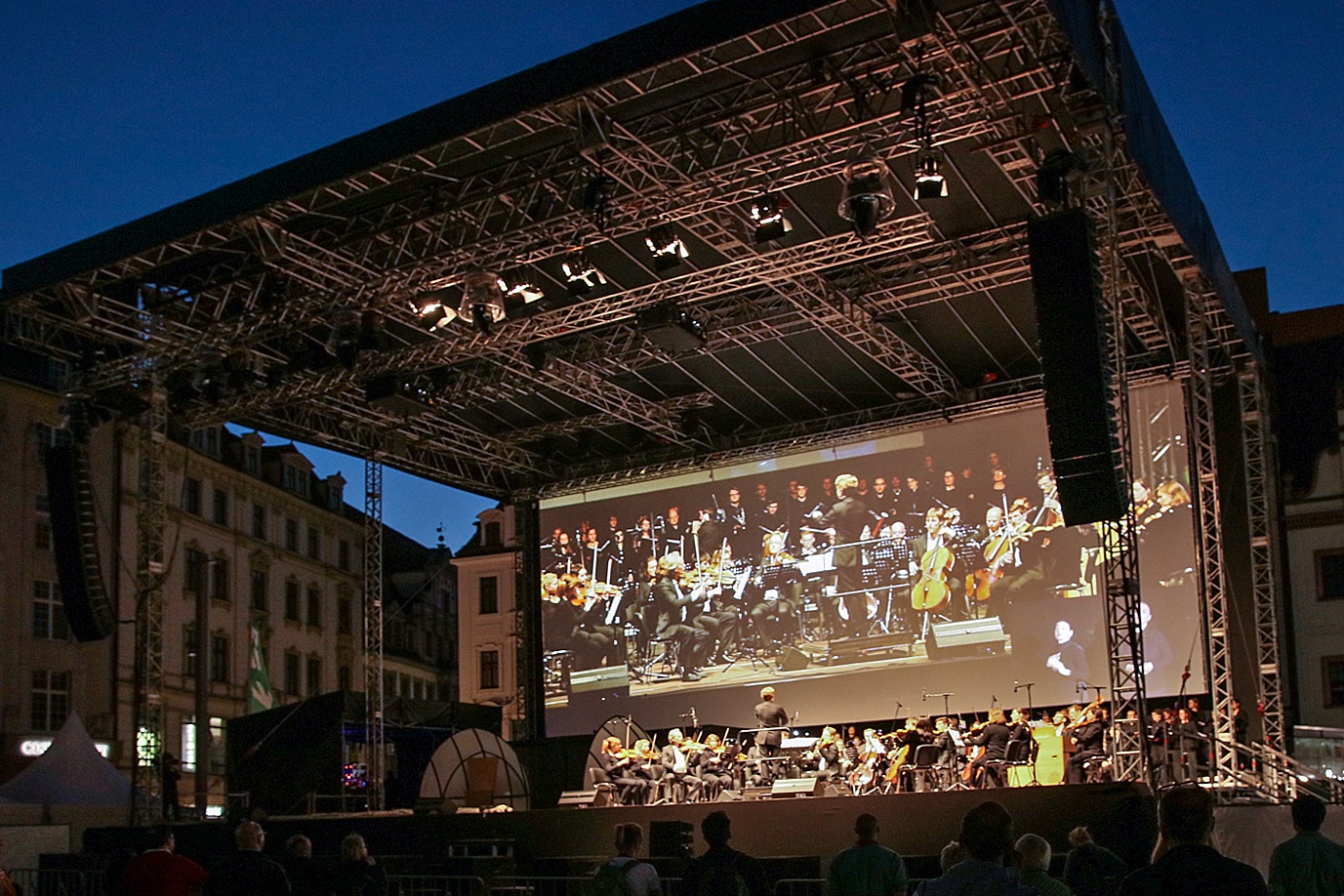 As a highlight of the Kirchentag (“church day”) and as one of the largest events of the Reformation year (500th anniversary of the Lutheran thesis on Wittenberg), the open-air spectacle “Zum Licht” was performed at the Leipziger market square at the end of May. Spanning sound collages, an emotional light show, opulent video projections – in addition a live performance with large orchestra, choirs, soloists, bands, actors and dancers – transformed the audience into a frenzy of picture and sound.