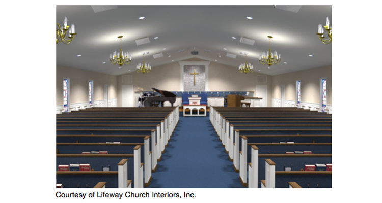 A good example can be seen in this photo of the New Beginning Worship Center, Northport, Ala., wherein the musical element is front and center.