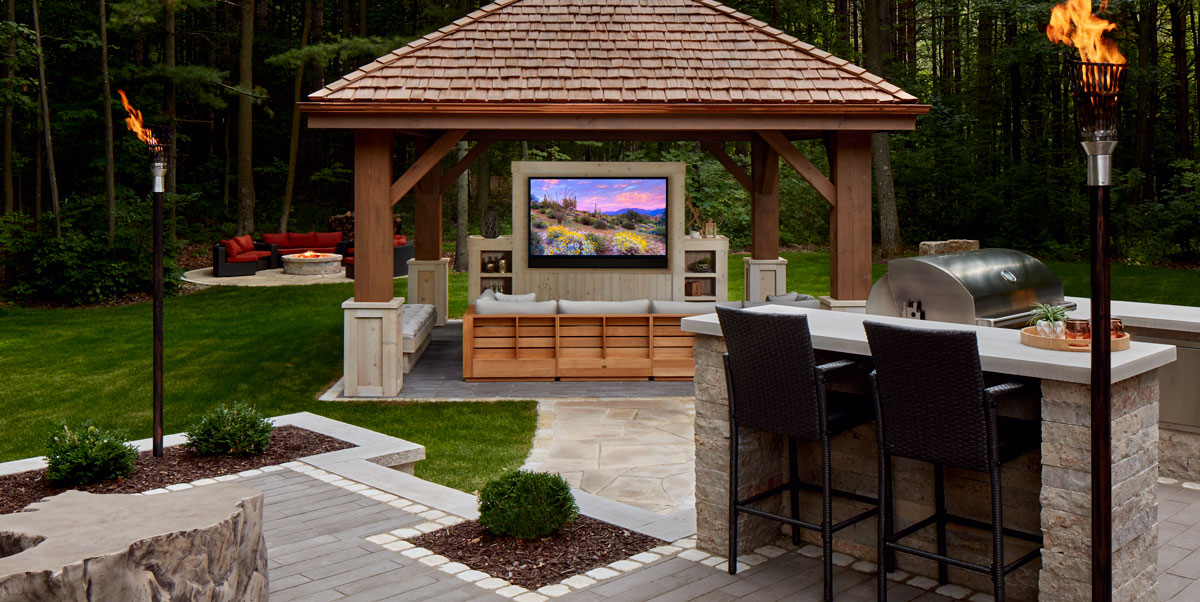 Televisions have traditionally been an inside amenity incompatible with the outdoors. Even in shaded areas, outside environments create an ambient light that makes it hard to see a detailed picture. At the same time, open air makes it difficult to contain sound, and TVs placed outside have to compete with extra outdoor noises. But Séura’s line of outdoor TVs have superior brightness, better sound, and overall supreme quality in every application – from direct sun to full shade.