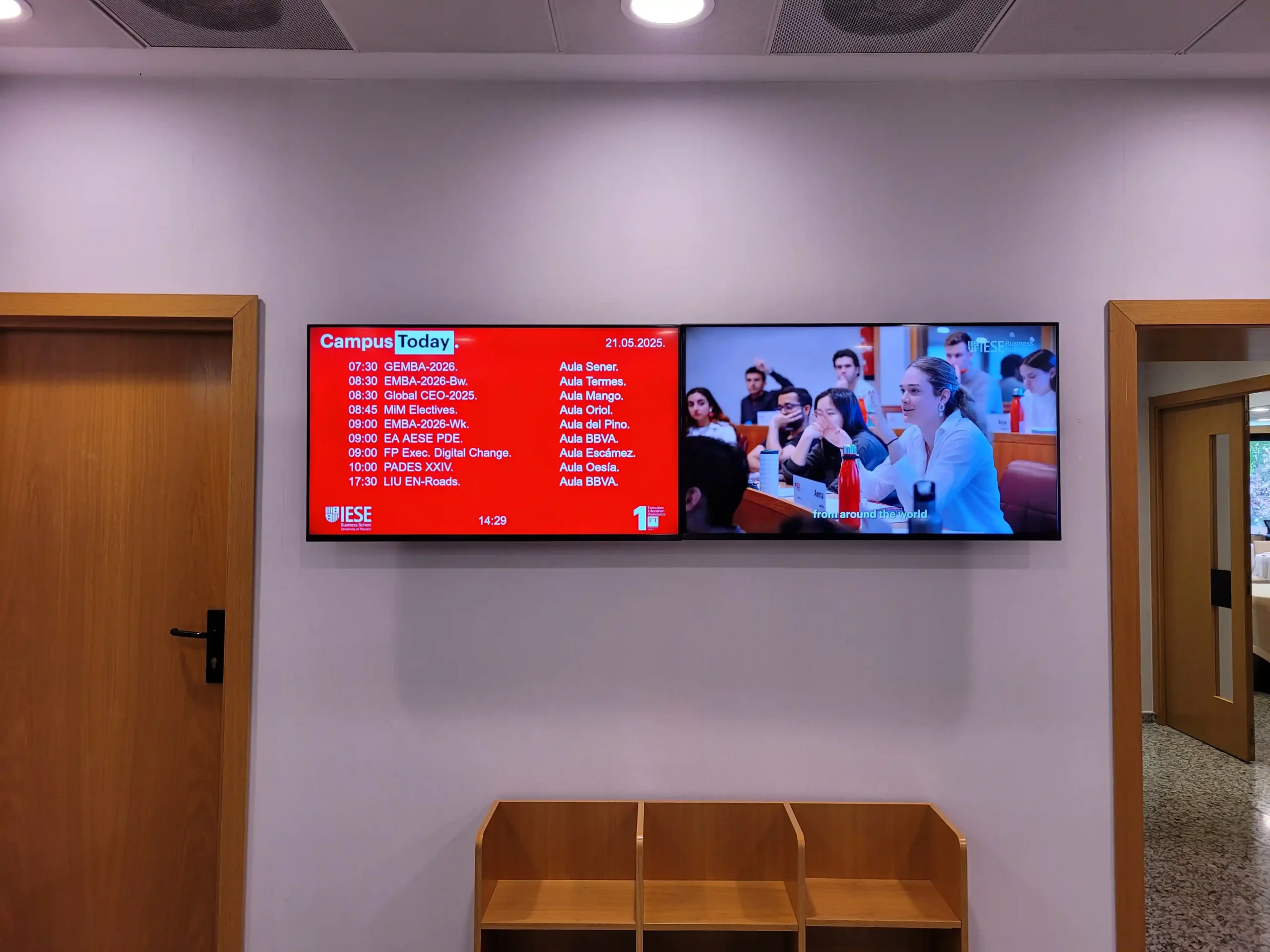 This collaboration, which began in 2017, was consolidated when IESE decided to optimize management and communication at its facilities. A solution that would centralize different functionalities, such as digital signage, classroom visualization and space booking, all with a strong visual and operational impact.