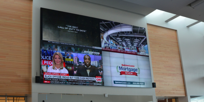 The University of California, Riverside Student Recreation Center installed an enormous video wall that now serves more than 21,000 students on a daily basis. The 80,000 square foot facility had everything it needed, from a rock wall to health classes to casual sports games to personal training, but it needed one more thing – A way to easily display school events, share news, and stream sports games all in a visually appealing, high-tech format that was in line with the design of the brand-new state-of-the-art center. The end result was the installation of an impressively large 7×7 28.5-foot video wall, consisting of 49 Barco 55’’ LCD displays seamlessly aligned and hung using Peerless-AV DS-VW755S Full Service Thin Video Wall Mount with Quick Release. Check out the UC Riverside case study to learn more about this top install!