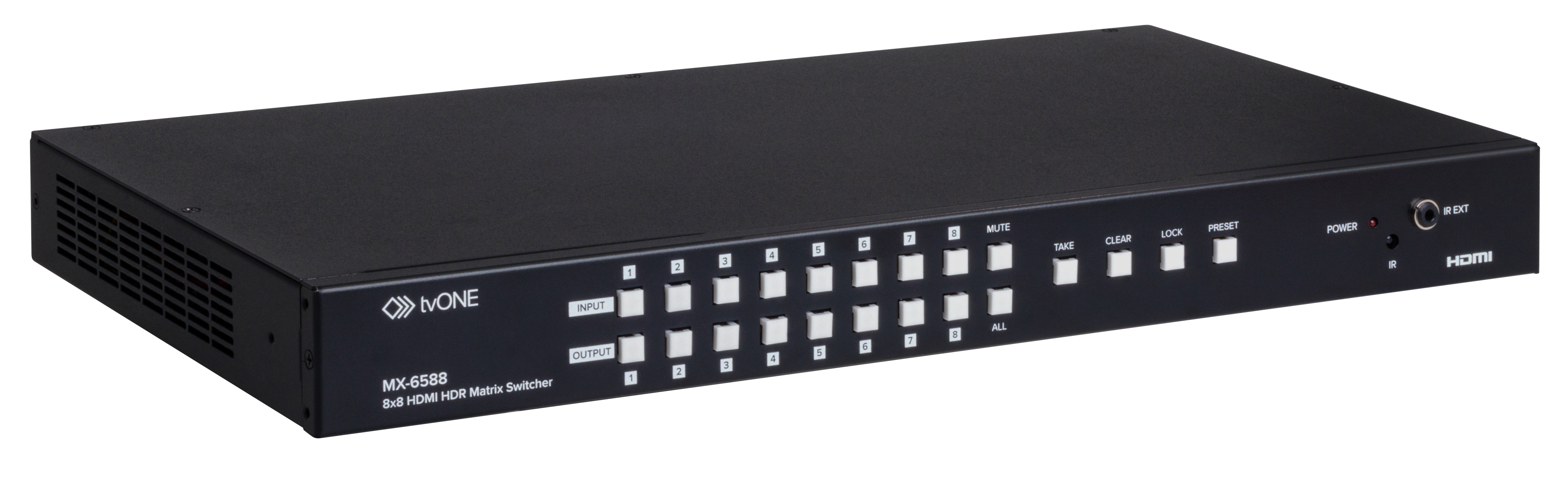 CINCINNATI, OH, May 30, 2018 – tvONE™ (www.tvone.com), a leading designer and manufacturer of cutting-edge video and multimedia processing equipment, will debut the MX-65xx Matrix Switcher series at InfoComm 2018 (Booth #C1740). The series includes 1T-MX-6588 (4K60 8×8 HDMI 2.0 Matrix), 1T-MX-6584 (4K60 8×4 HDMI 2.0 Matrix) and 1T-MX-6544 (4K60 4×4 HDMI 2.0 Matrix).